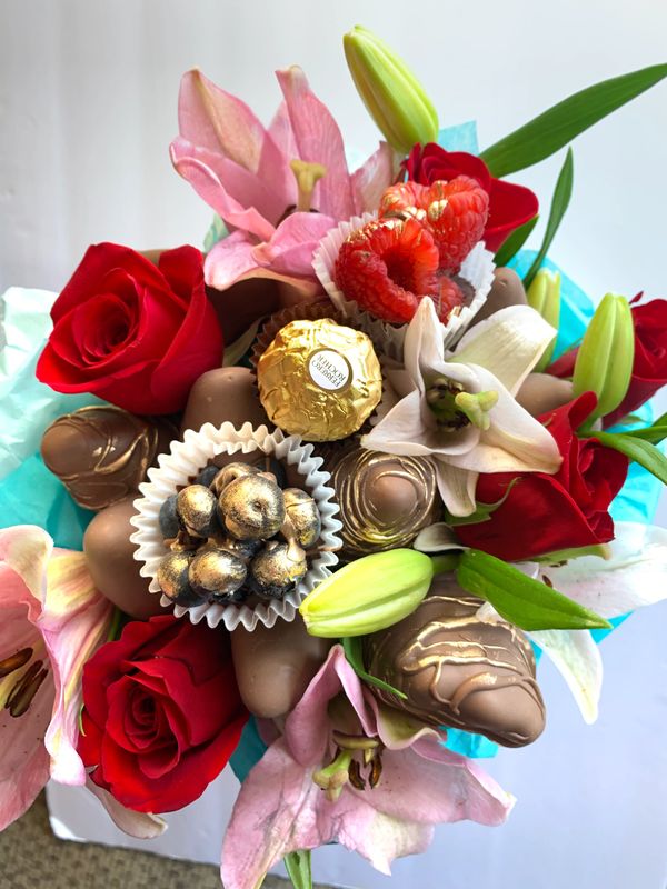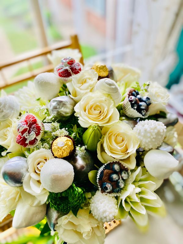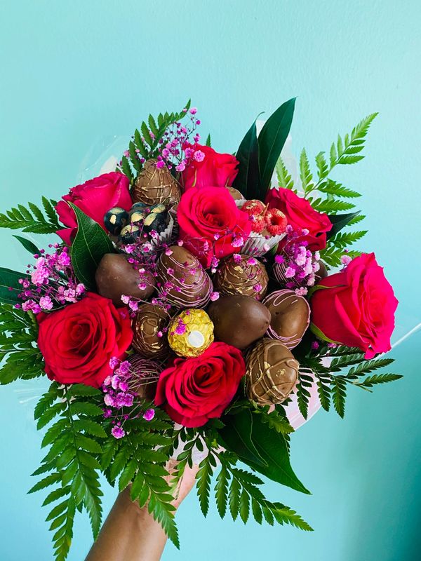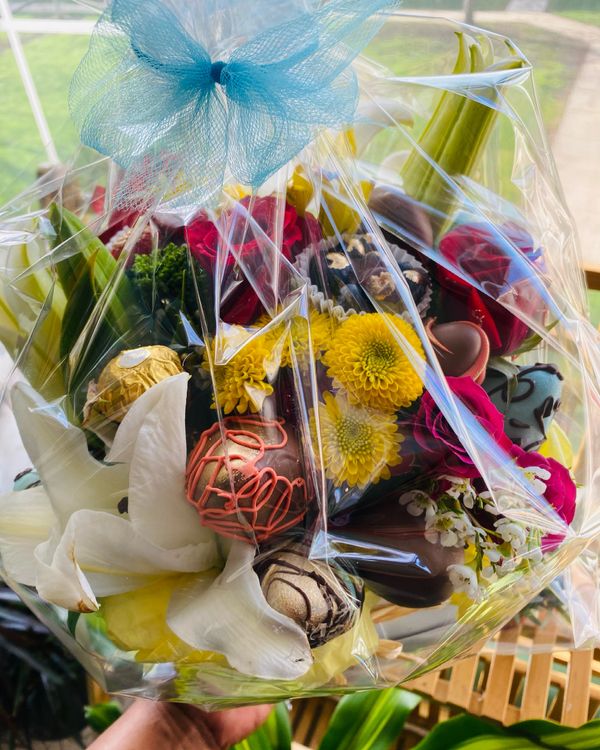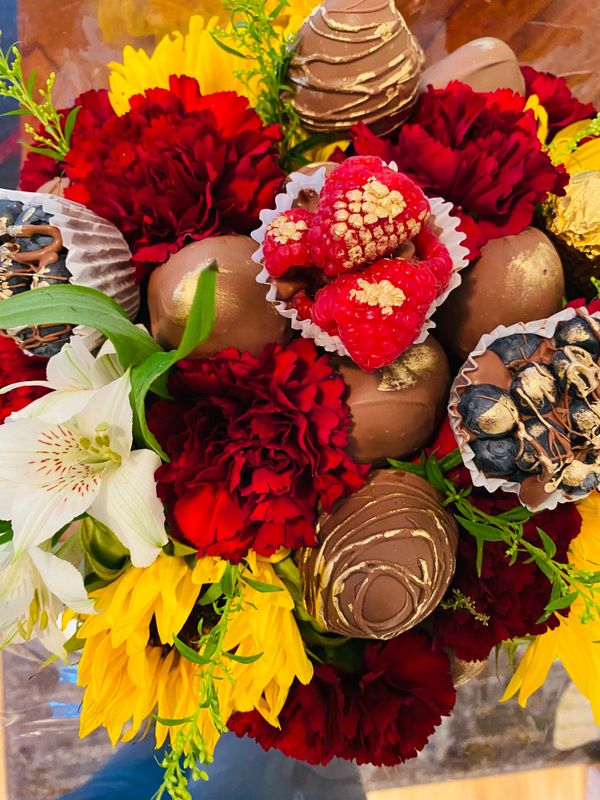 We offer beautiful edible bouquets decorated with fresh flowers and hand dipped beautiful chocolate dipped strawberries. I also offer other sweet treats such as chocolate brittle, cocoa bombs, poffertjas (mini dutchpancakes) and more.